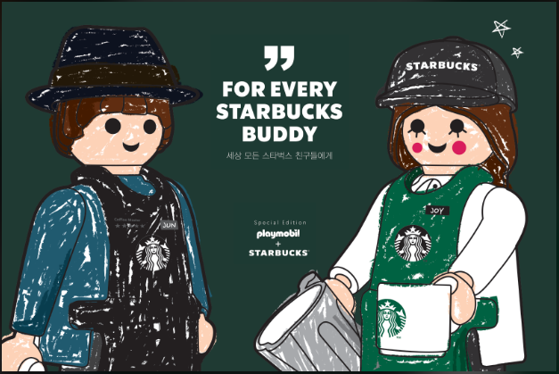8월 10일 '세상 모든 스타벅스 친구들에게'라는 이름으로 플레이모빌과 스타벅스의 콜라보 굿즈의 그림과