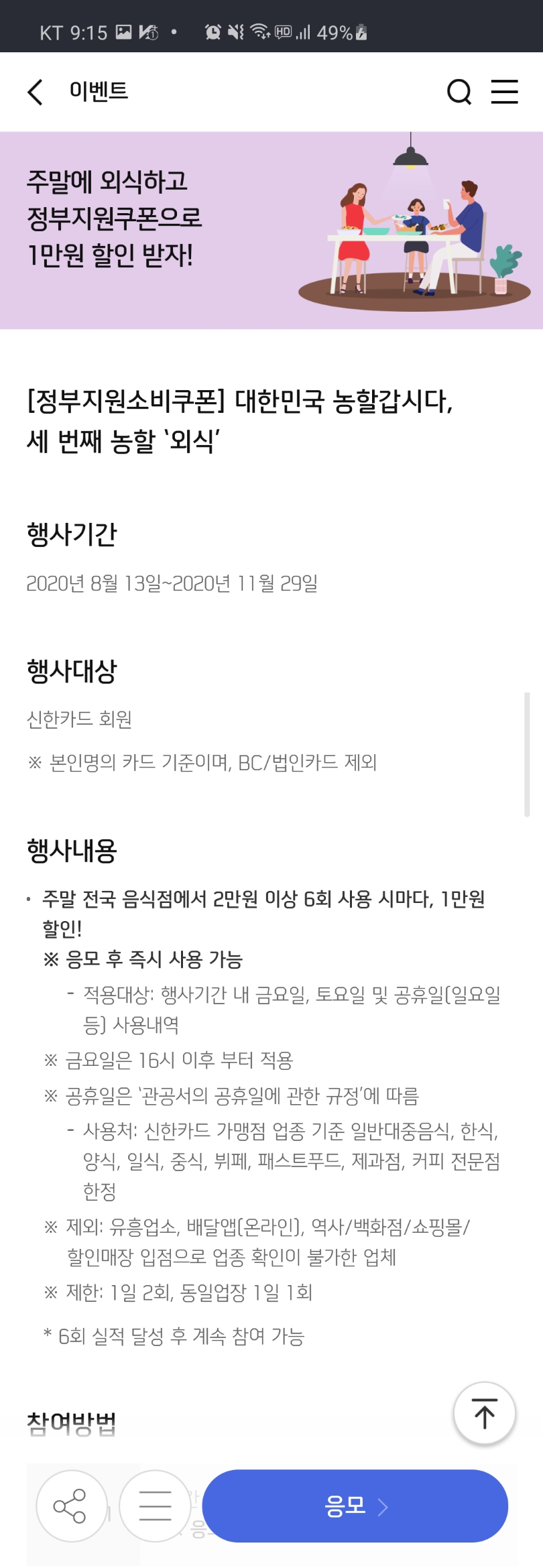 이상으로 국민외식비 지원사업과 참여방법에 대해 알아보았습니다.