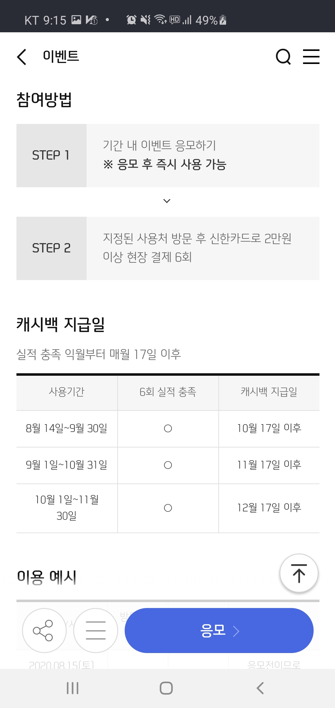 카드사를 통한 사전 응모를 통해서만 캐시백 받을 수 있으니 꼭 응모 후 이용하셔서 혜택 놓치지 않으시길 바랍니다.