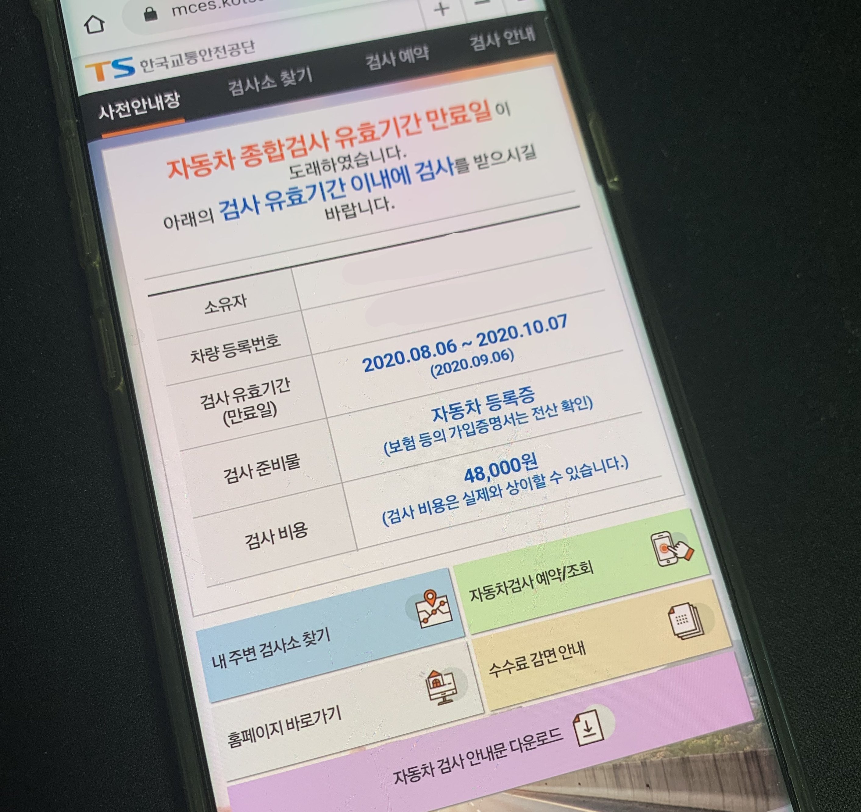 비사업용 승용자동차는 2년마다 한국교통안전공단에서 자동차 정기검사, 종합검사 안내문이 발송됩니다.