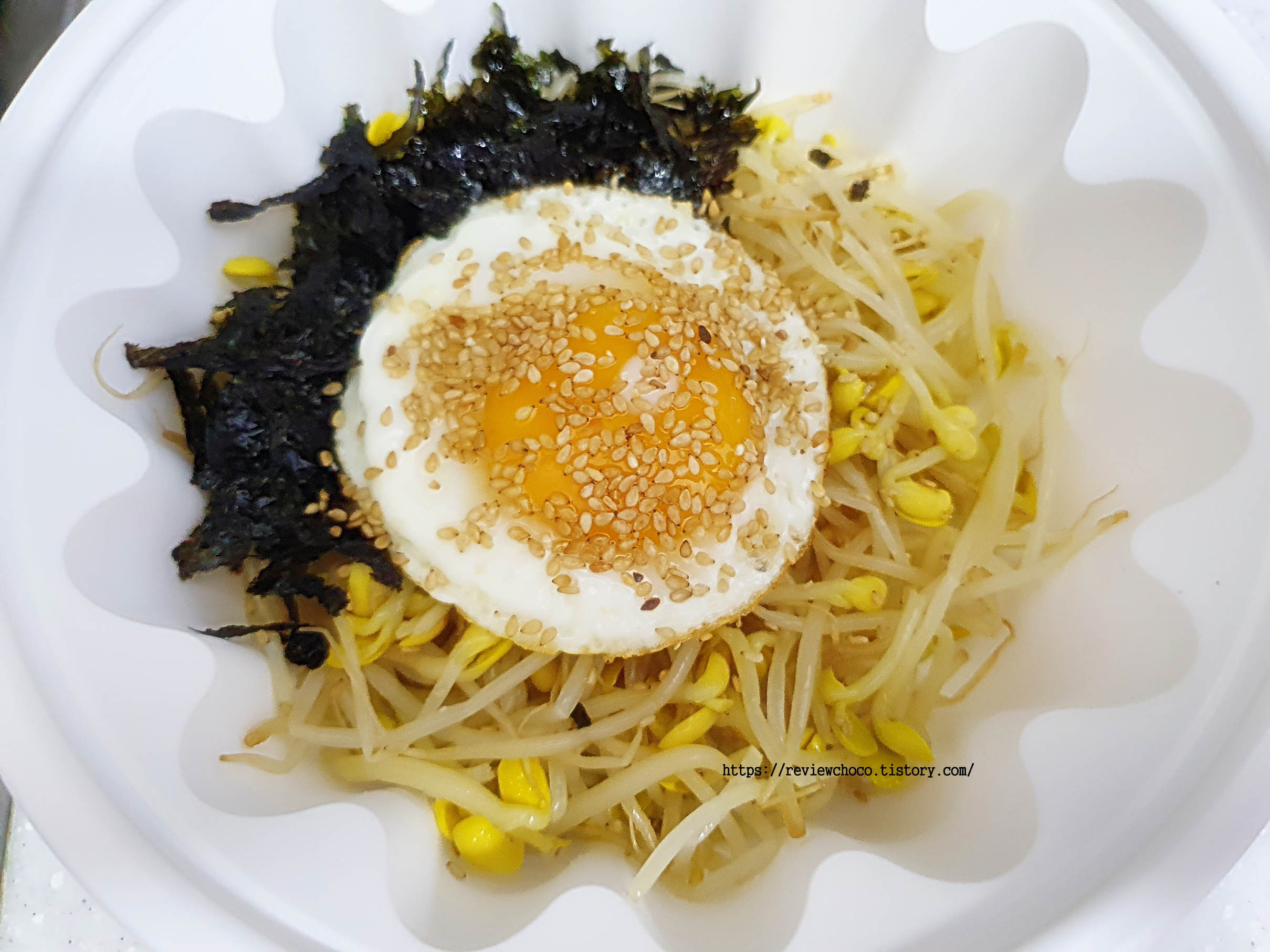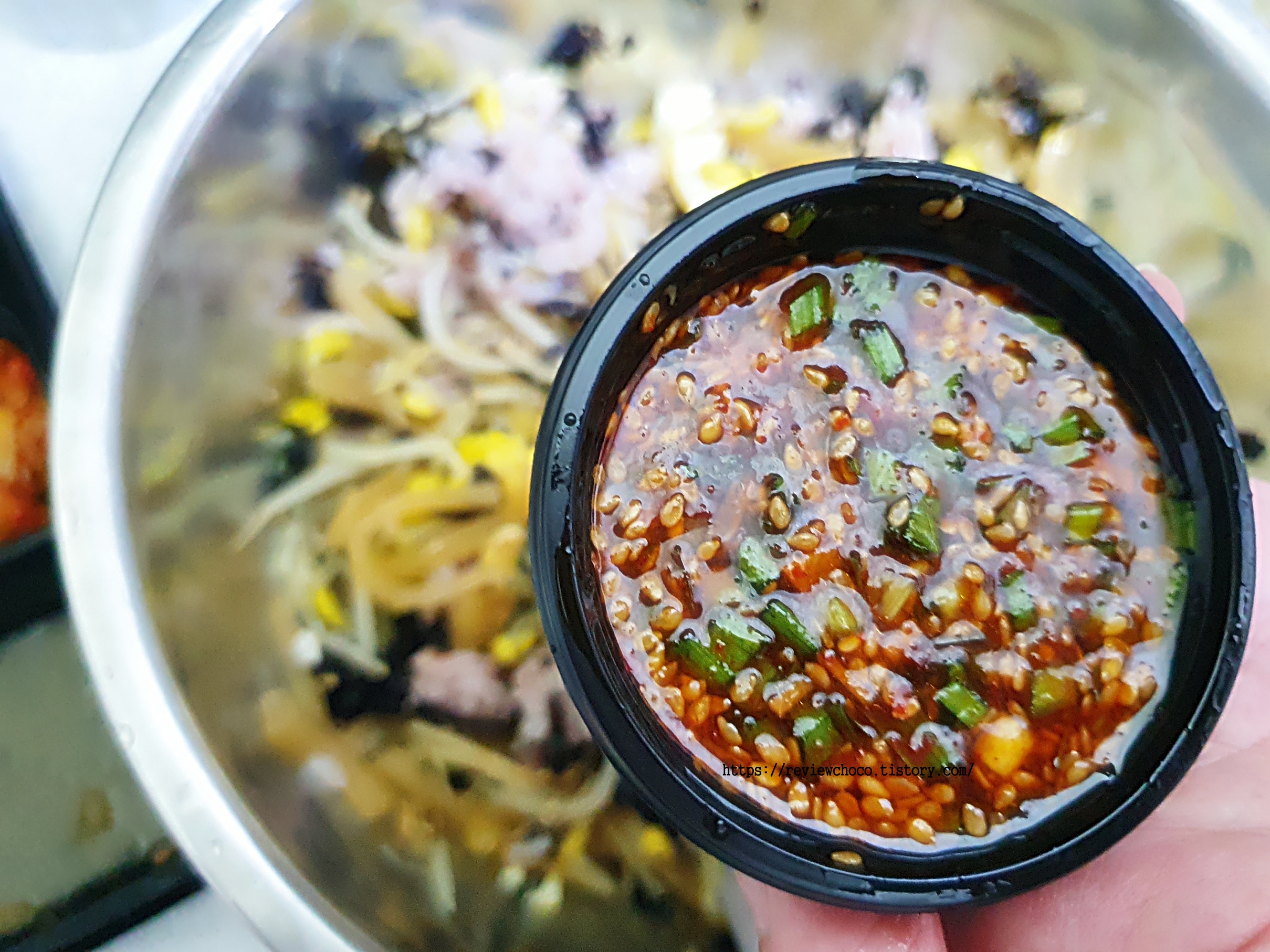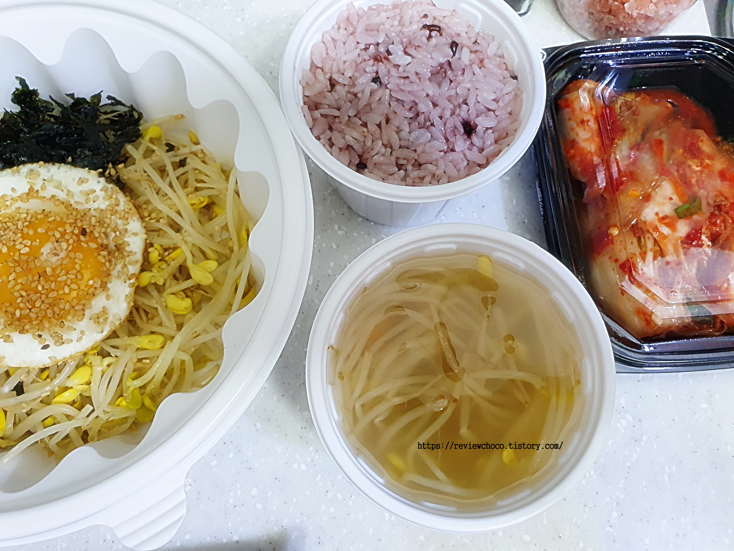 한 번은 콩나물 비빔밥만 하나 사서 포장해주신 반찬까지 모두 넣고 싹싹 비볐더니 둘이 먹어도 충분한 양이더라고요.