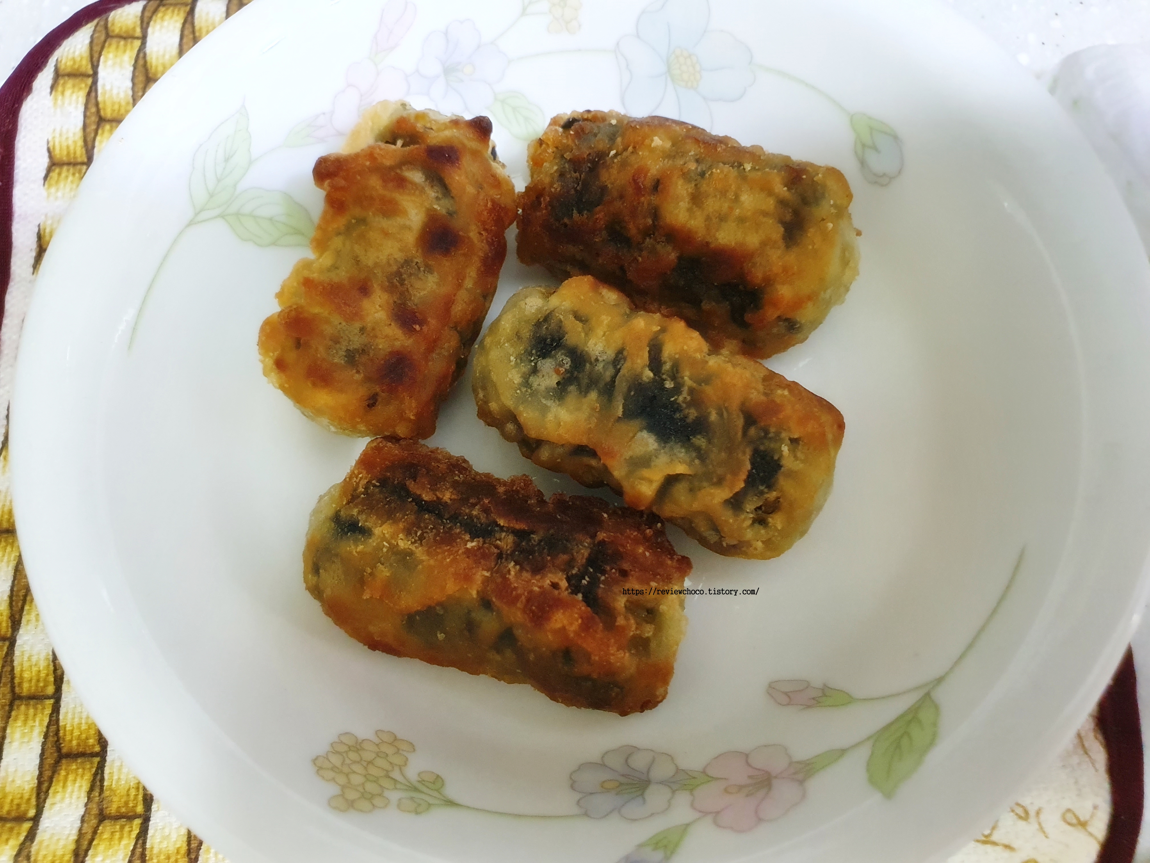 프라이팬에 튀겨도 되지만, 불 조절을 잘 못해서 한번 태워먹었기에 안전하게 에어프라이어로 조리하였습니다.