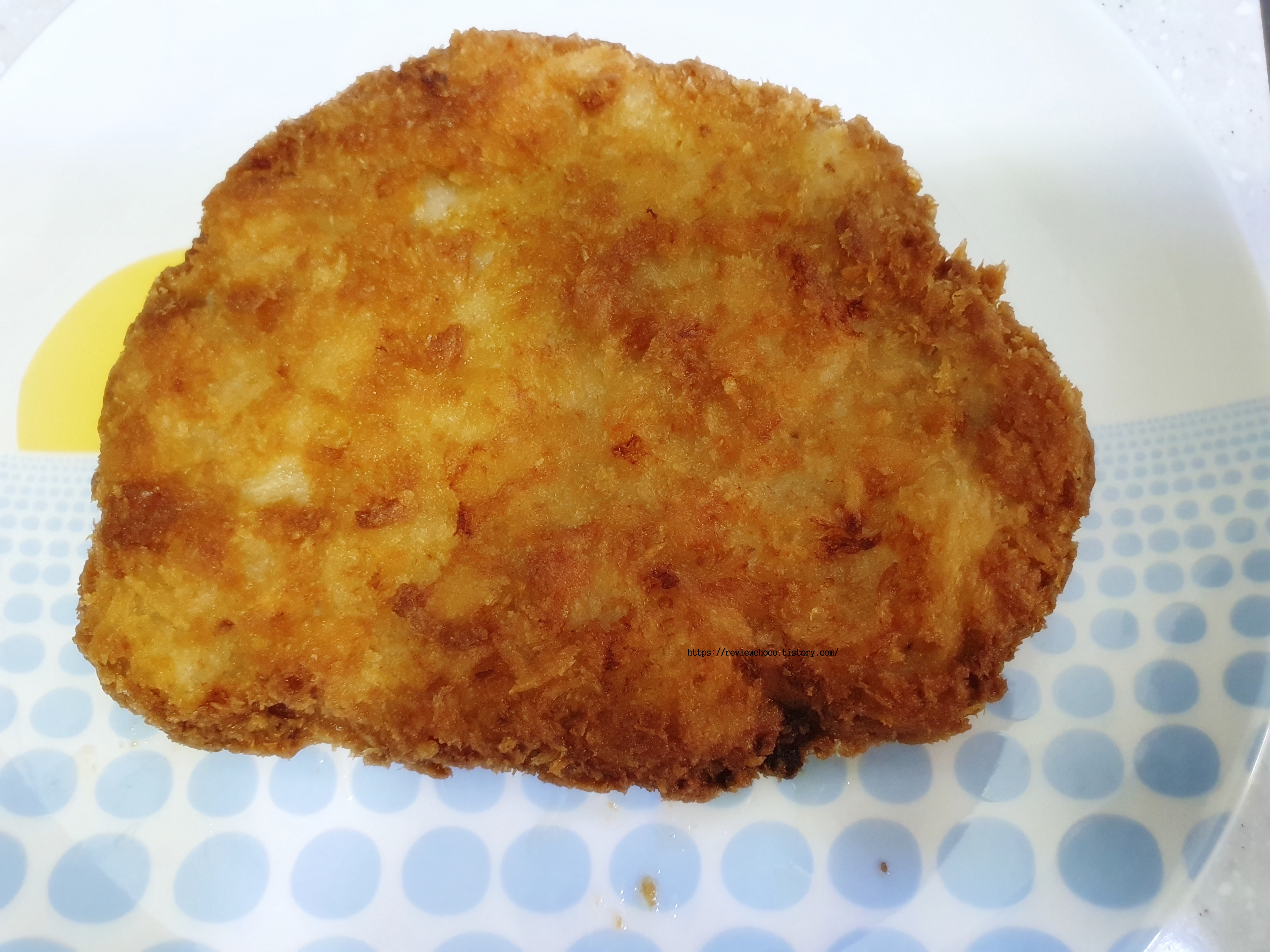 사진과 실 제품 사이에는 돈가스 두께가 반 정도 차이 나는 것 같습니다.