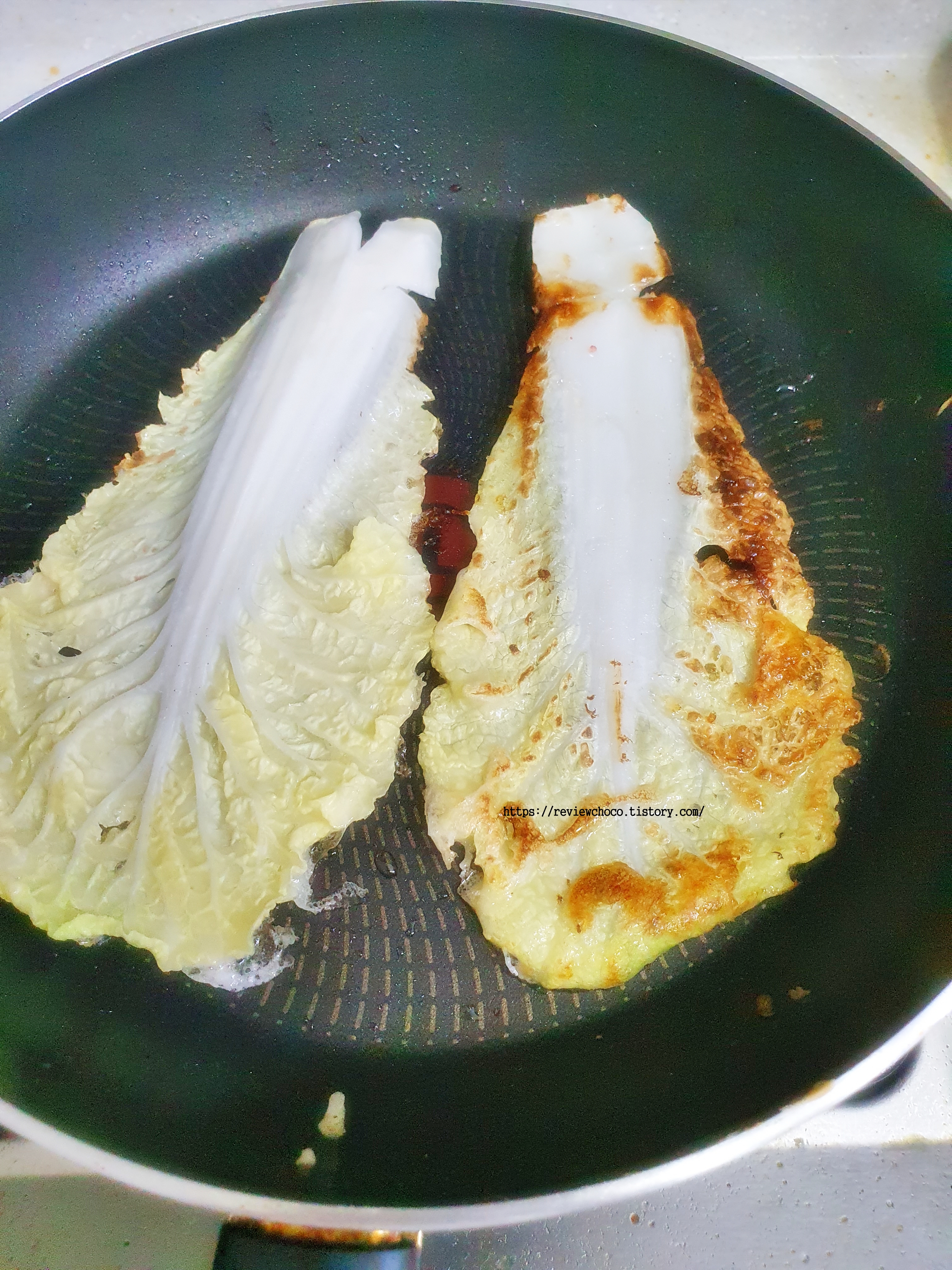 프라이팬에 배추가 골고루 닿게 하기 위해서입니다.
