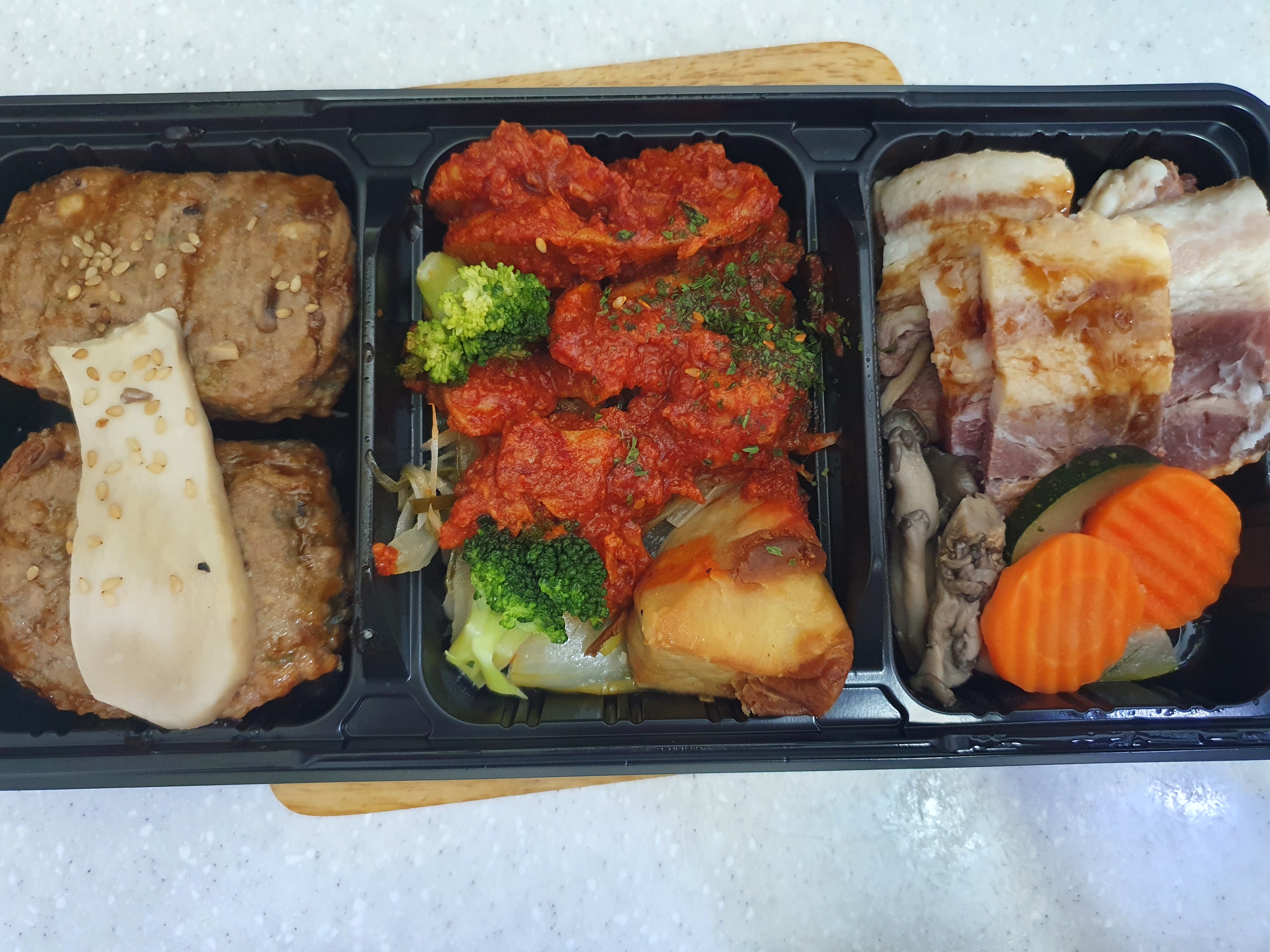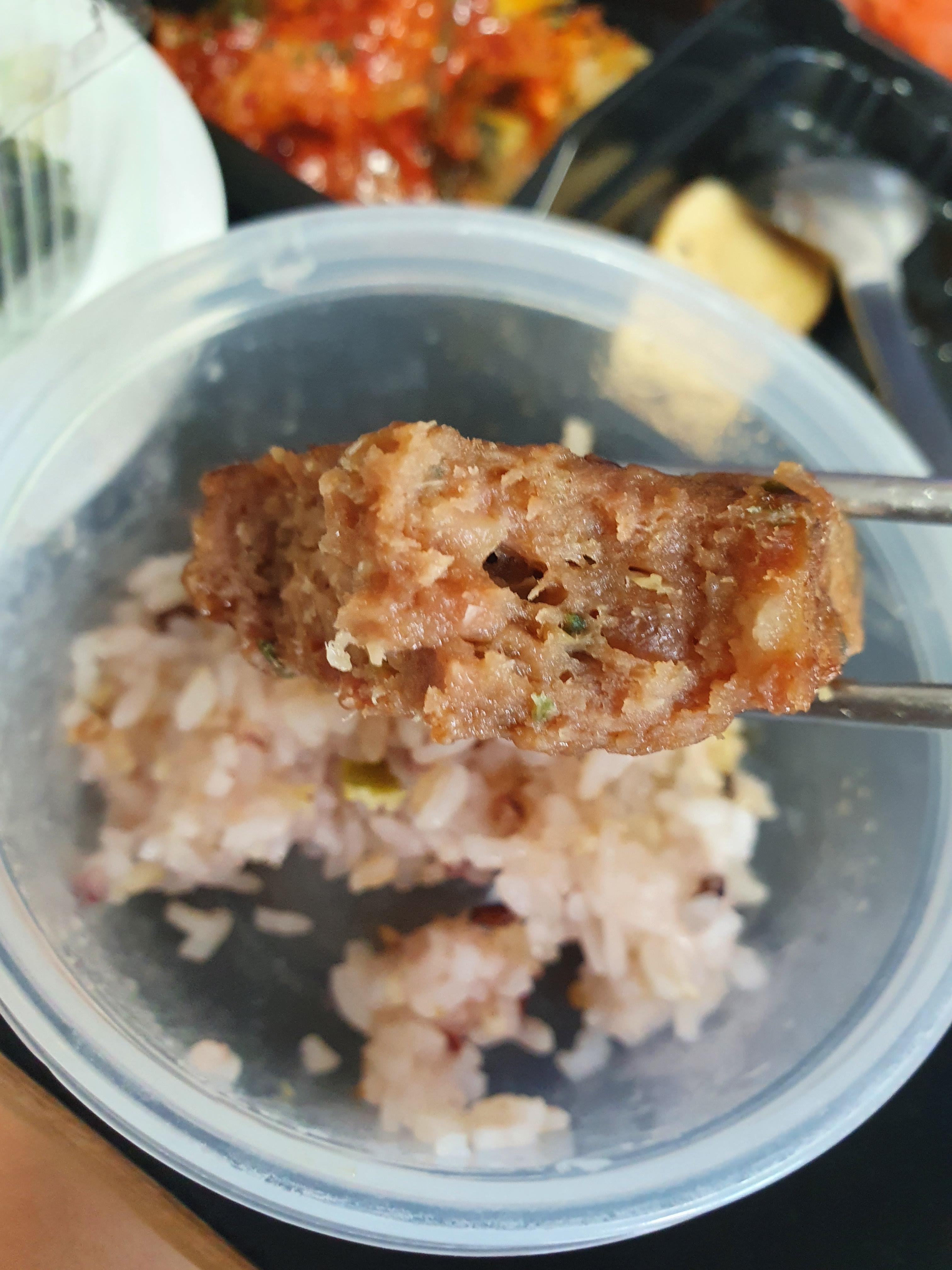혼자 먹기에 너무 고기고기 하게 한 종류의 반찬이라 부담스러울 수 있을 것 같아요.
