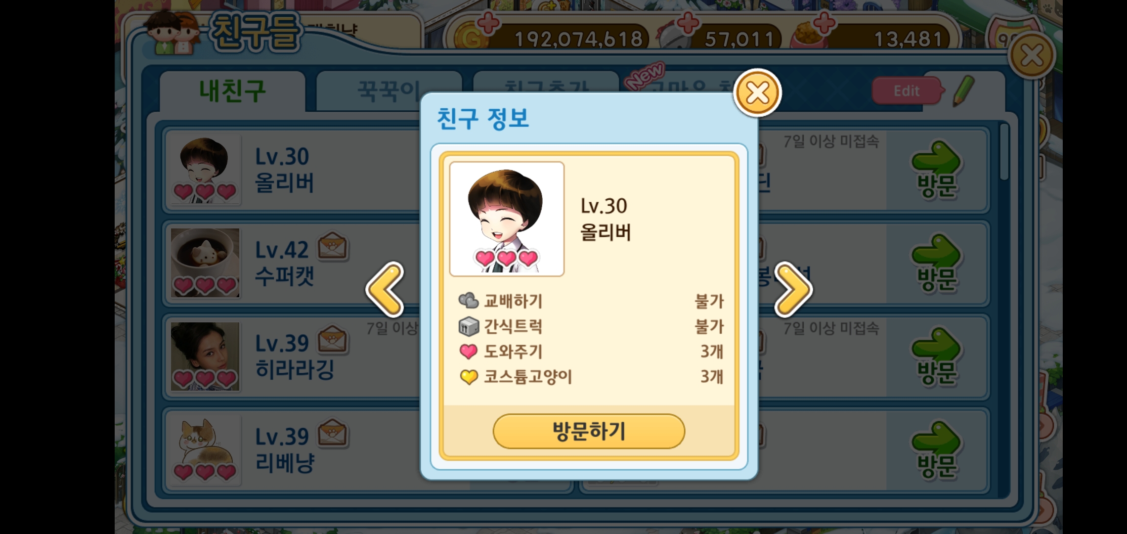 친구 목록의 맨 처음 있는 레벨 30의 올리버는 운영자입니다.