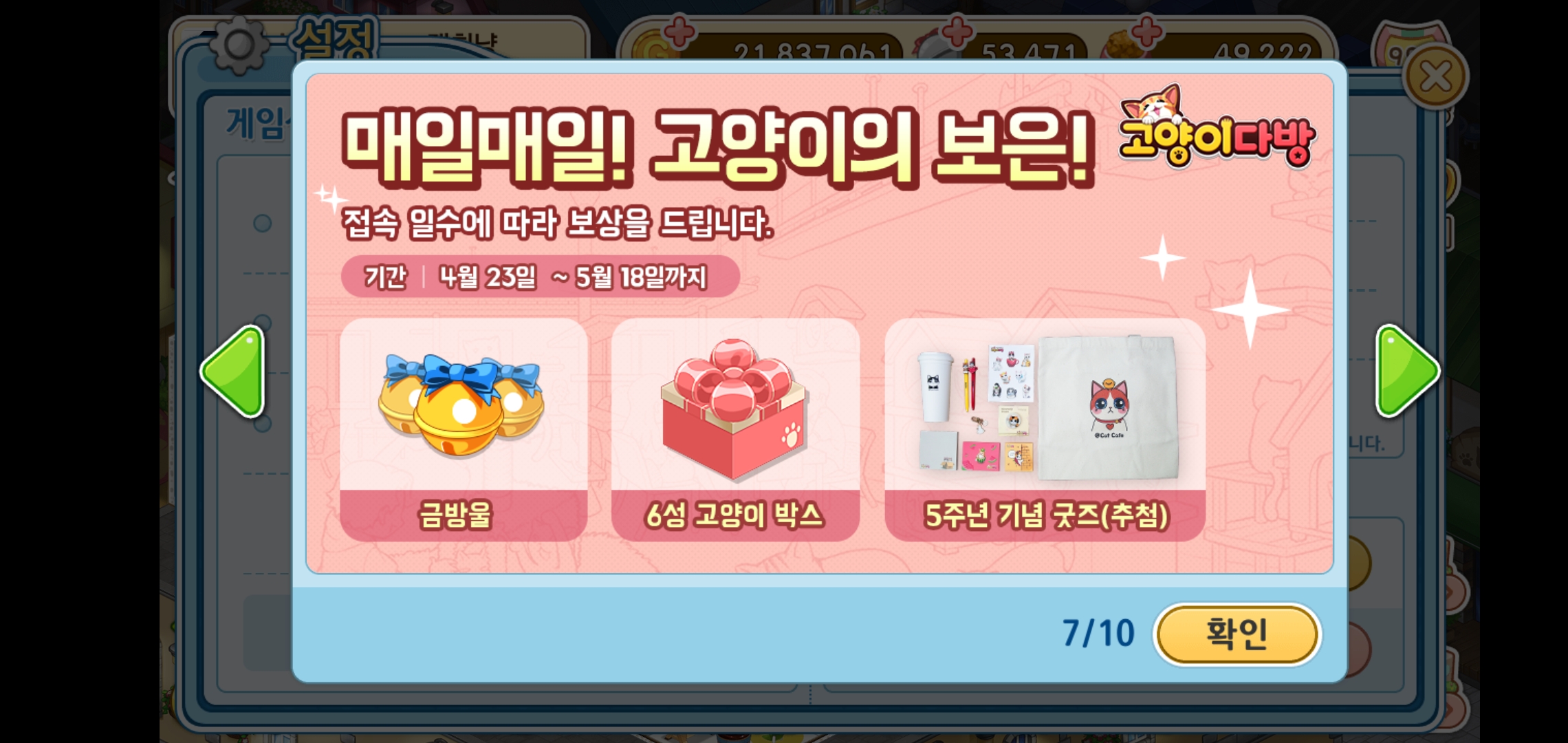 금방울들을 모아 최고등급 고양이가 나오는 골드 고양이 박스를 얻을 수 있습니다.