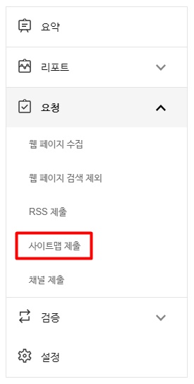 요청 -> 사이트맵 제출을 클릭하면 오른쪽 그림처럼 사이트맵 제출 화면이 나타납니다.