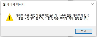 소유확인을 눌러 주고 자동 등록 방지를 위한 입력창을 통과하면 소유확인 완료 안내가 뜹니다.