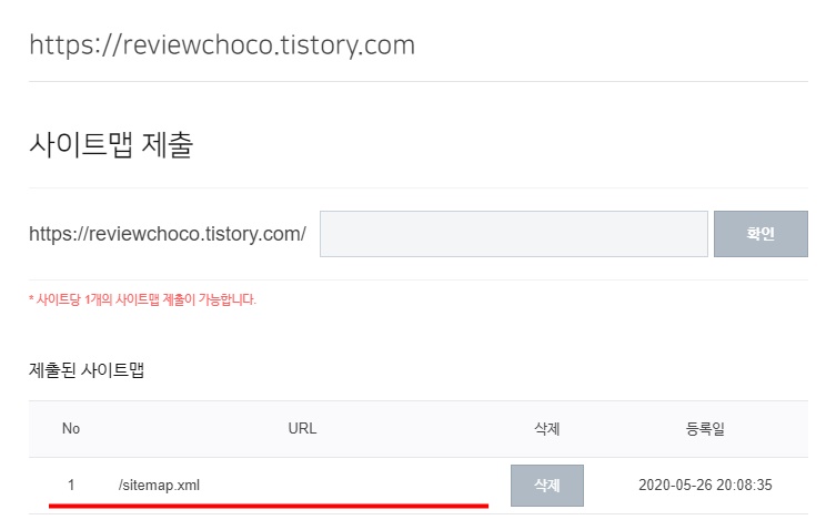 본인의 티스토리 주소/ 뒤에 sitemap.xml을 입력한 후 확인을 눌러주면 됩니다.