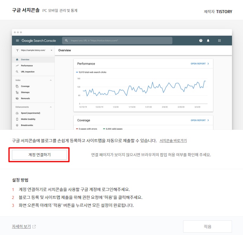 계정을 연결한 후 권한 요청을 '허용' 하고 적용을 누르면 설정이 완료됩니다.