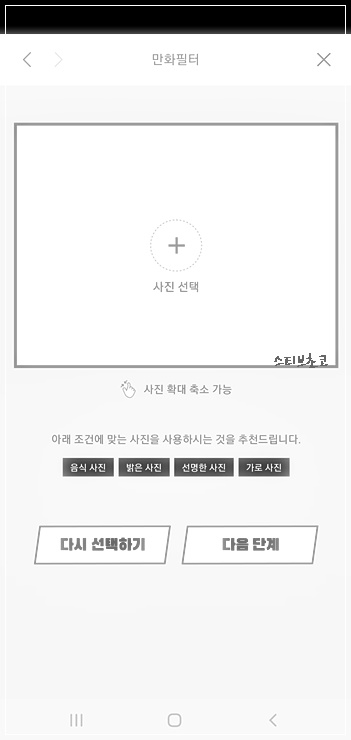 시작하기를 선택하여 다음으로 넘어가면 사진을 선택하는 화면이 나옵니다.