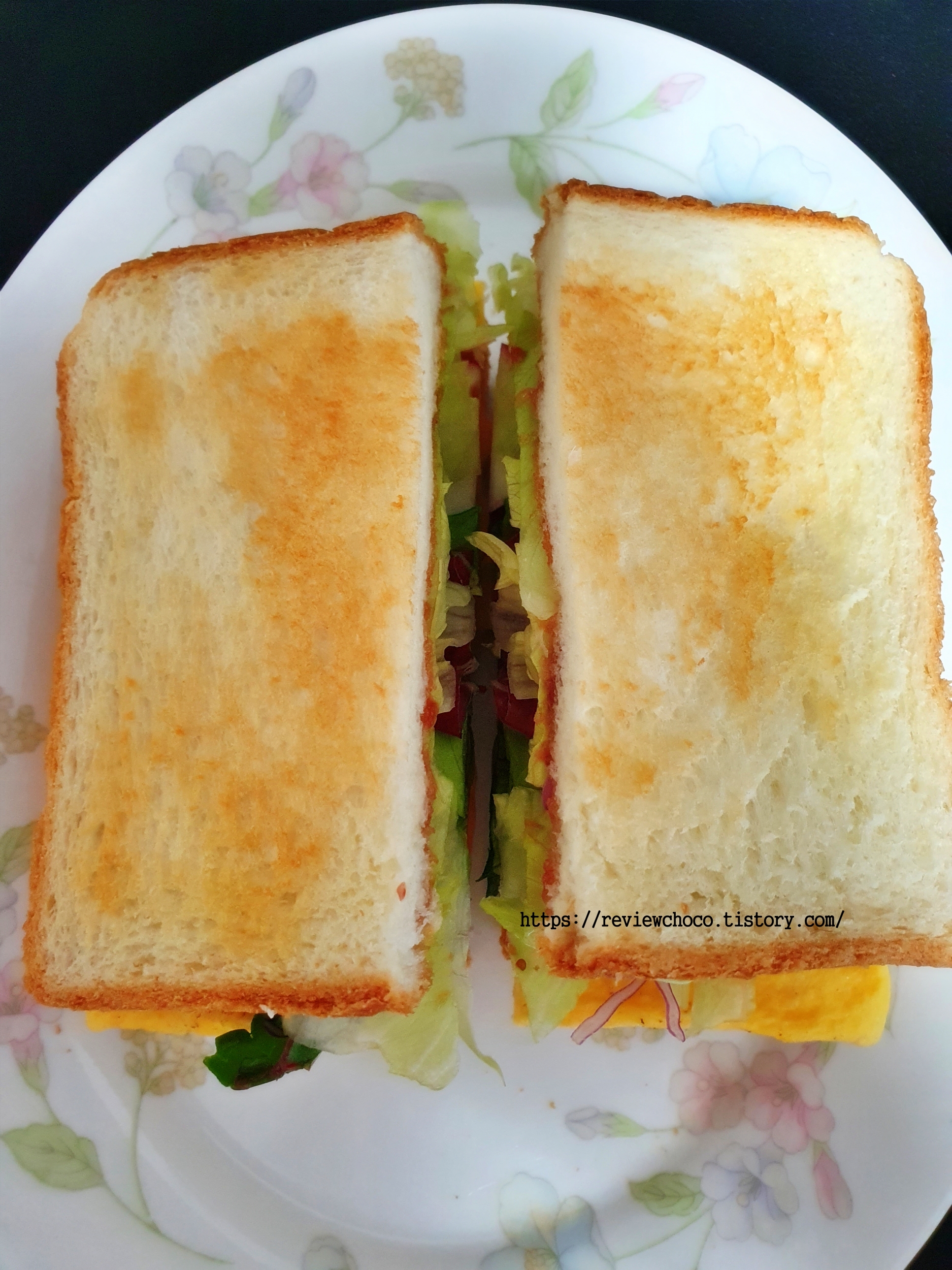 샐러드만 먹는 것보다는 이렇게 먹는 게 식빵 2개만큼 포만감도 더 높고, 탄수화물도 섭취해서 기분도 더 좋아요. ^^;