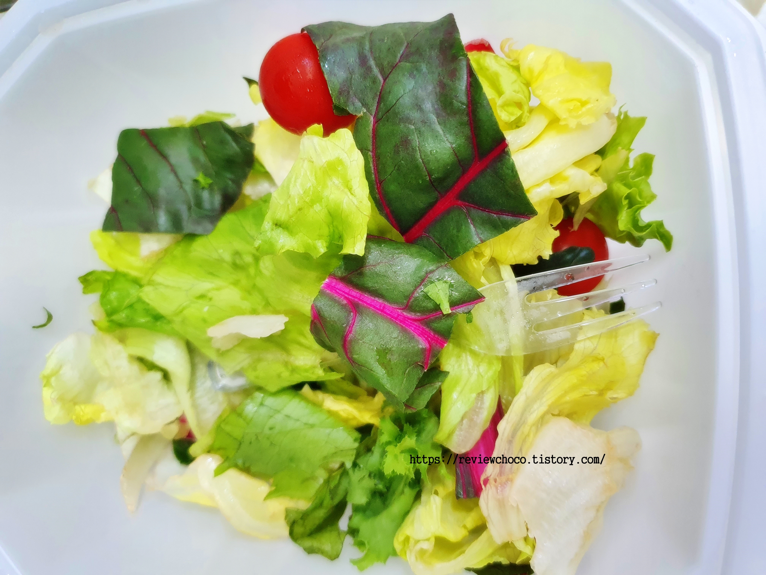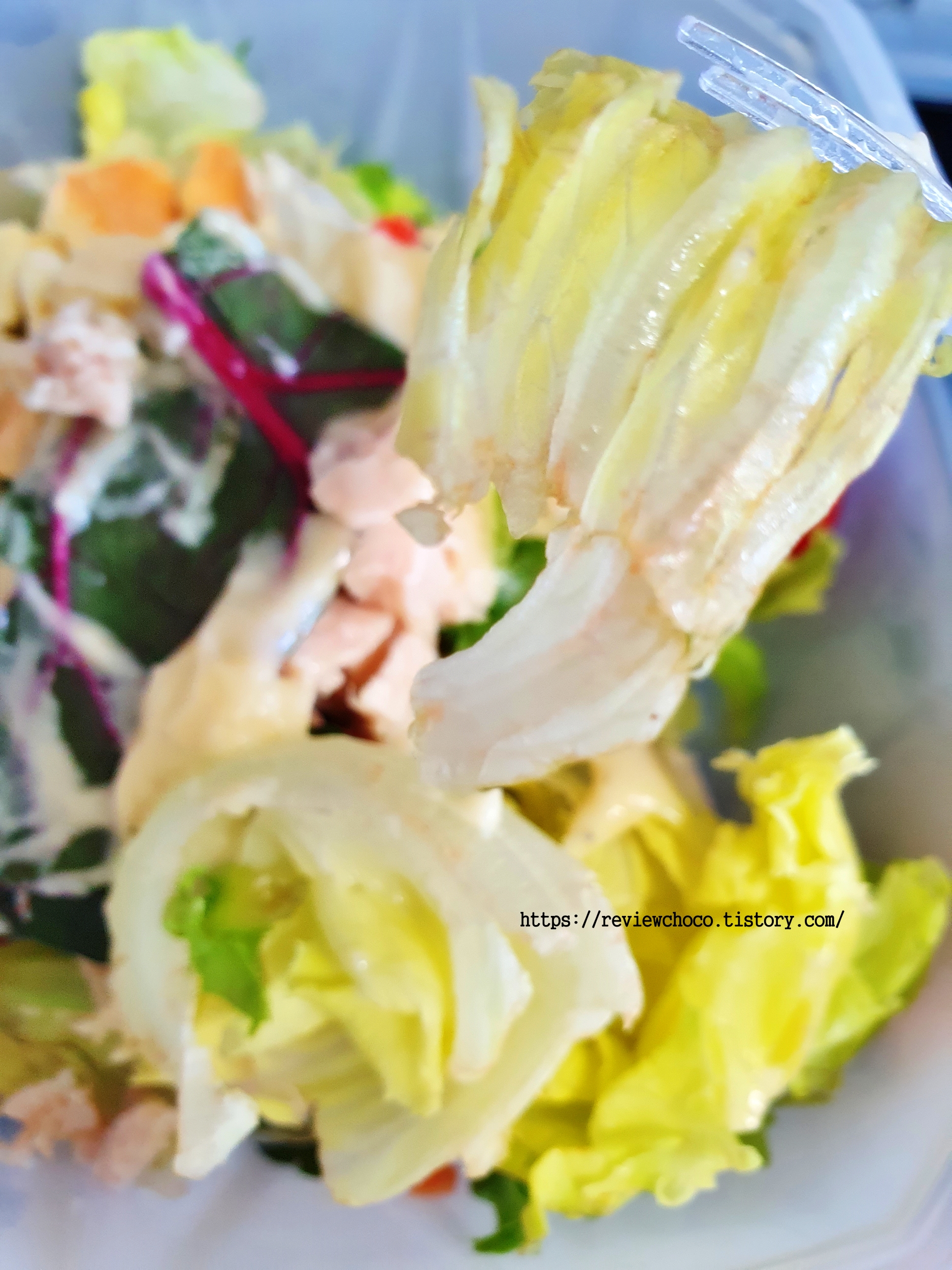 이번에 구매한 샐러드는 양상추가 살짝 색이 변하고 있네요.