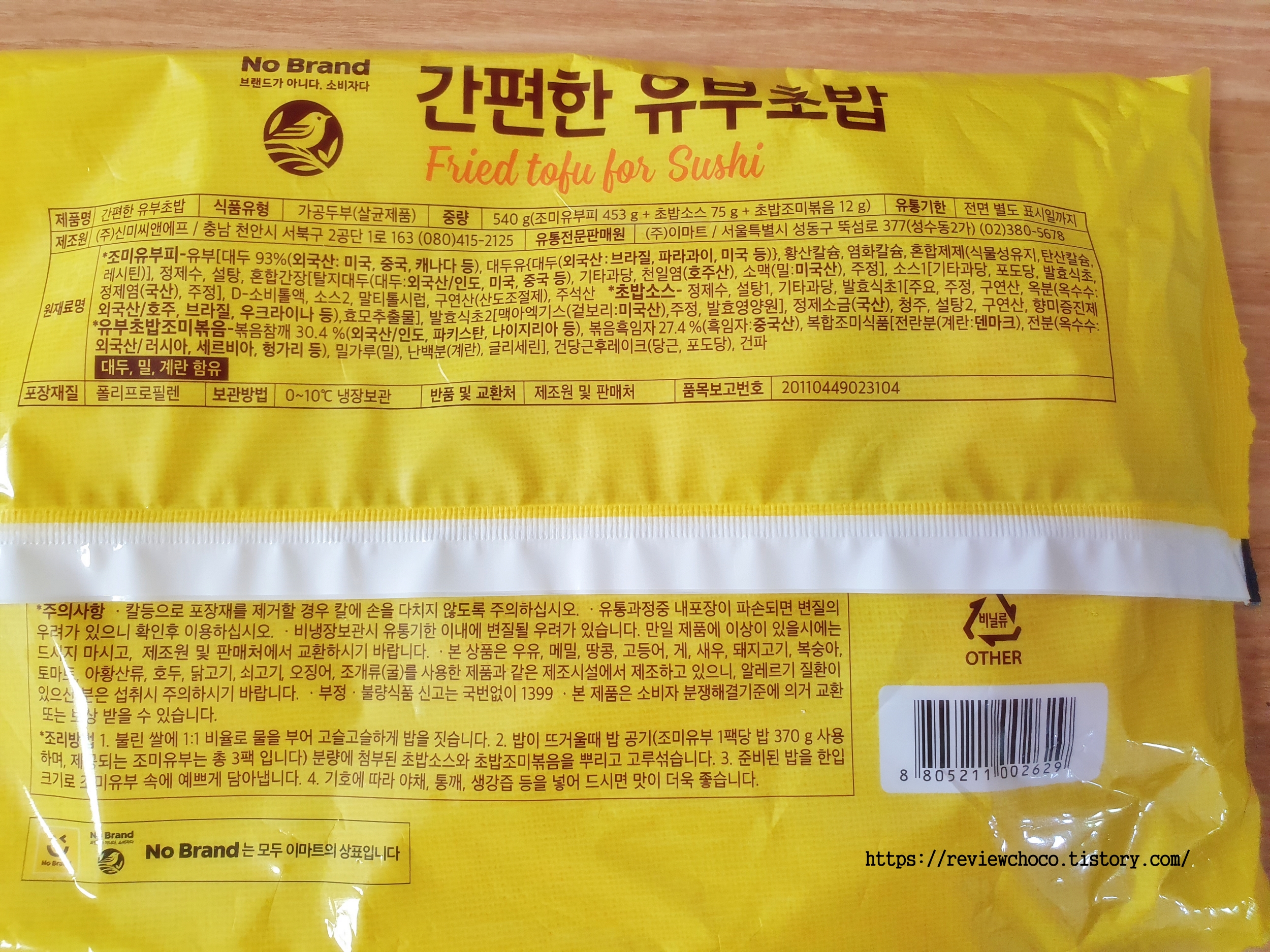 노브랜드 유부초밥도 다른 브랜드 유부초밥이랑 특별히 다르지 않았어요.