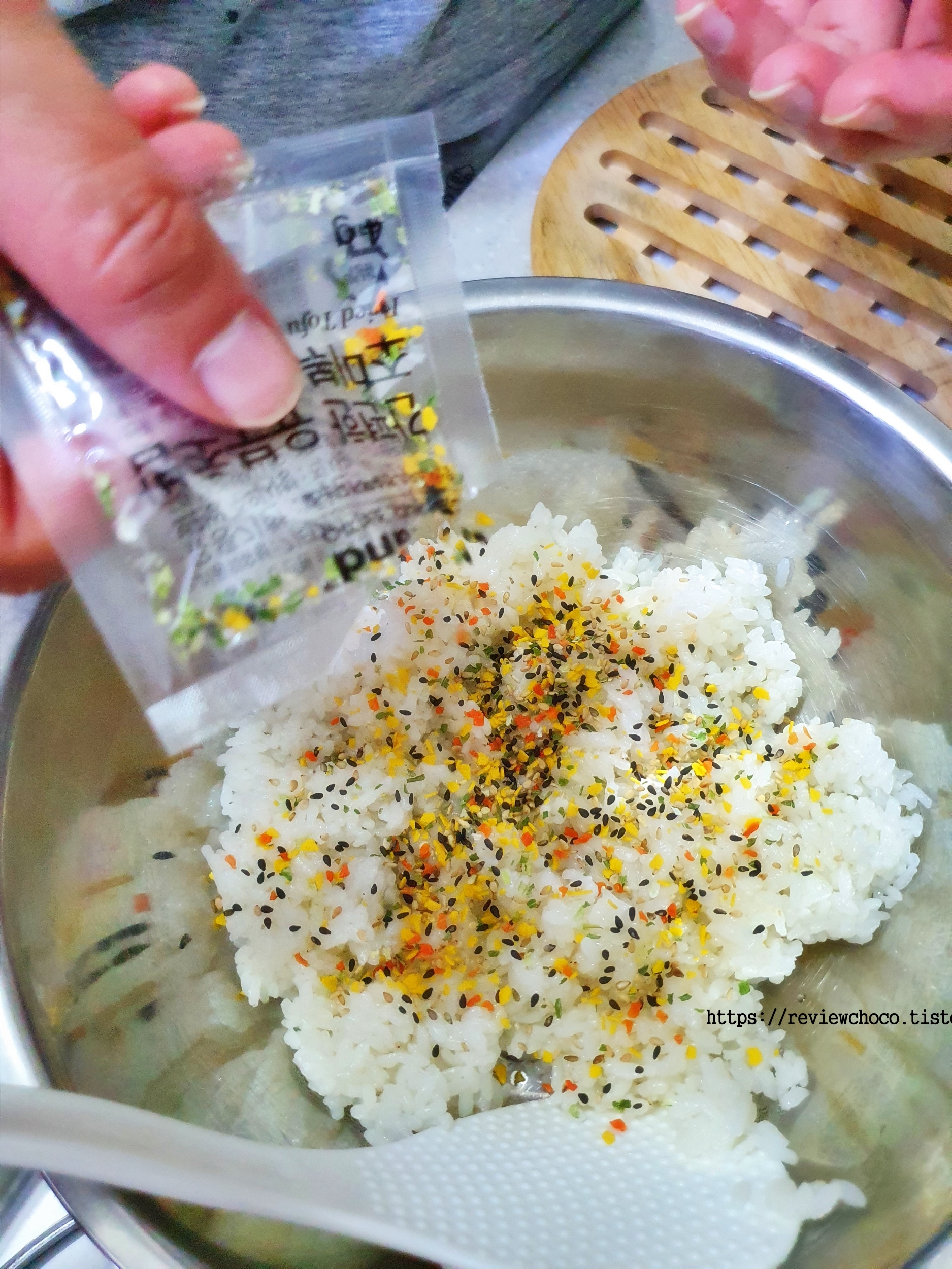 유부초밥 식초 소스와 조미볶음을 넣고 잘 섞어주면 끝나는 아주 간단한 조리방법이죠~
