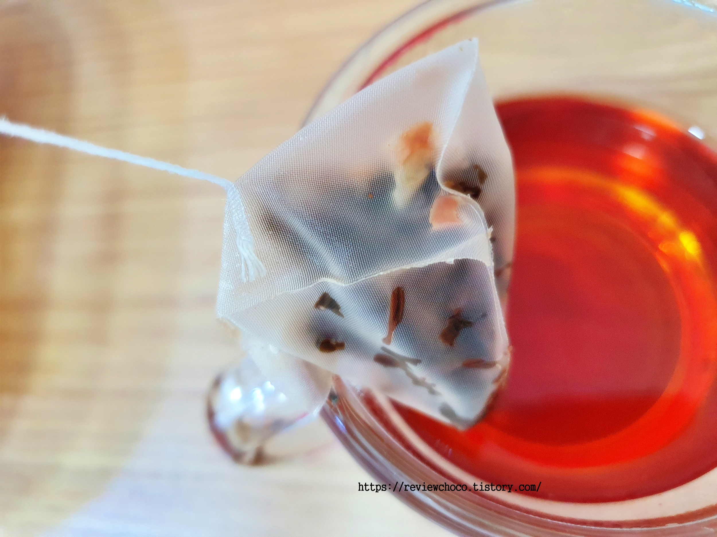 물에 우리기 전 티백의 향이 엄청 좋았는데, 맛에서는 향만큼은 많이 안 느껴져서 조금 아쉬웠어요~