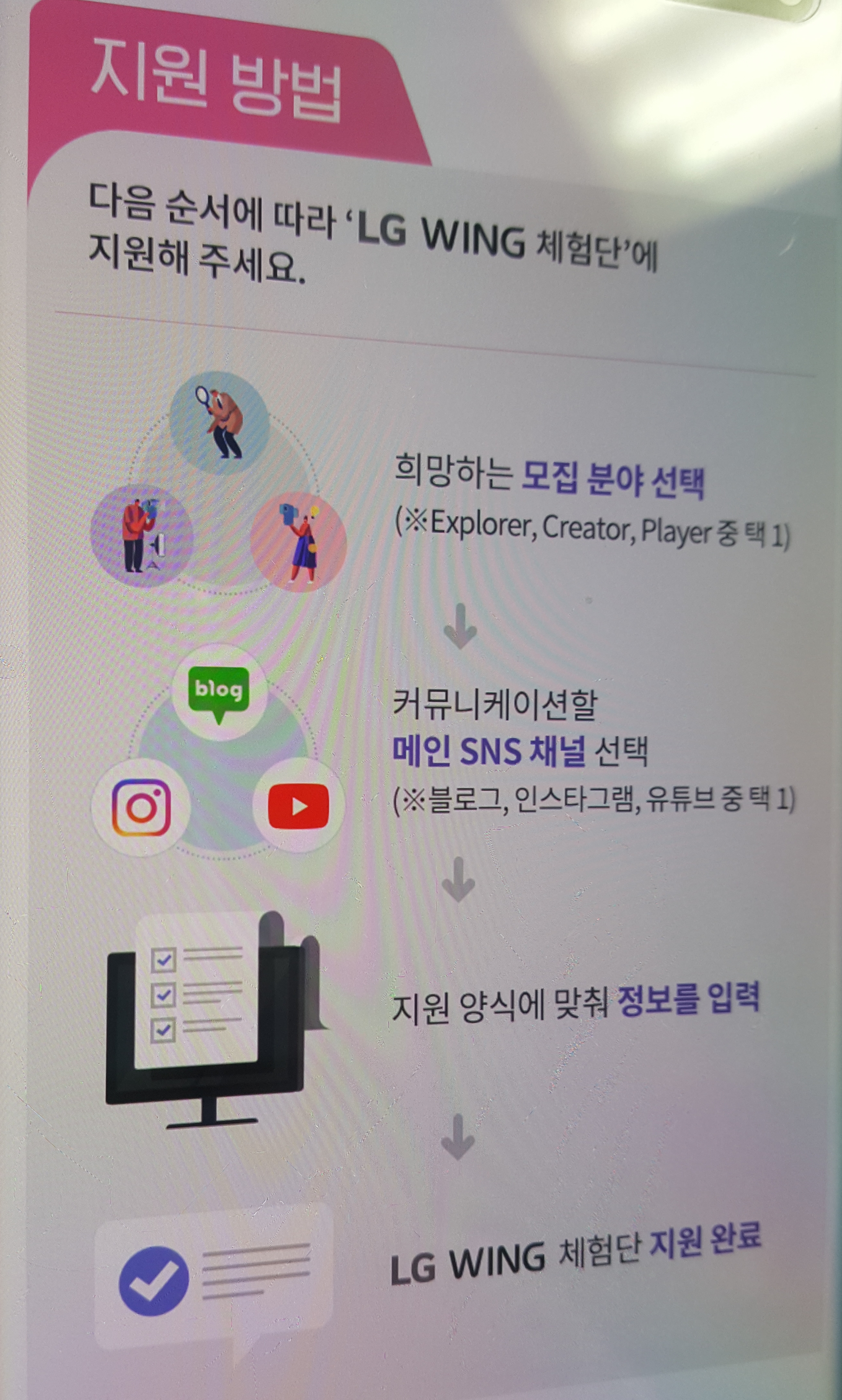 지원 분야는 익스플로러 / 크리에이터 / 플레이어 3가지로 응모할 수 있고
