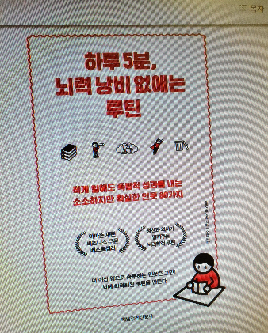 하루 5분, 뇌력 낭비 없애는 루틴이라는 책을 보게 되어 바로 읽어보았다.